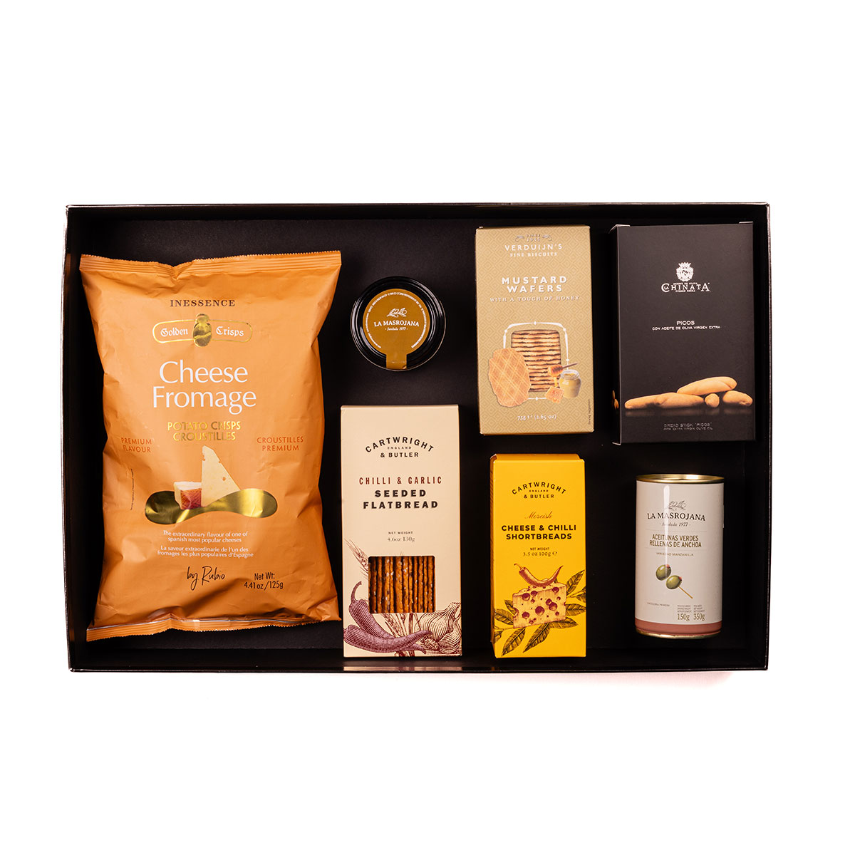 Ingrédients : farine de blé (calcium, fer, niacine, thiamine), beurre (lait, sel), cheddar affiné (20%) (lait de vache pasteurisé, sel, présure végétarienne, ferments lactiques, fécule de pomme de terre, colorant : annatto), poudre à lever (bicarbonate d'ammonium BP, antiagglomérant : carbonate de magnésium), œufs pasteurisés, piments broyés (0,3 %), paprika fumé espagnol.