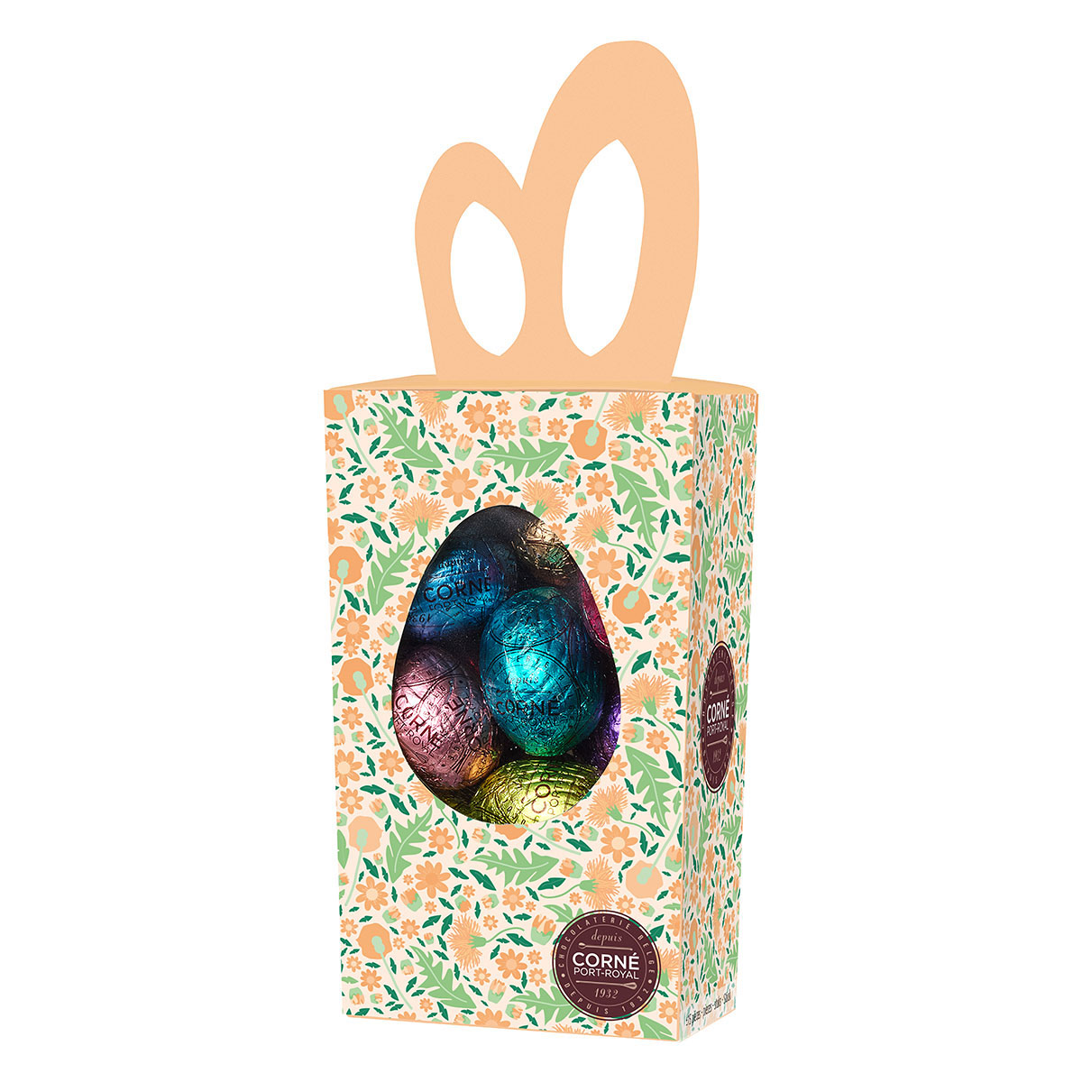 Comme elle est attractive cette boîte aux oreilles de lapin, remplie de 23 oeufs de Pâques délicieux ! C'est le cadeau idéal pour égayer toute fête de Pâques ! Découvrez tous les différents goûts et laissez vous séduire par nos oeufs de Pâques.