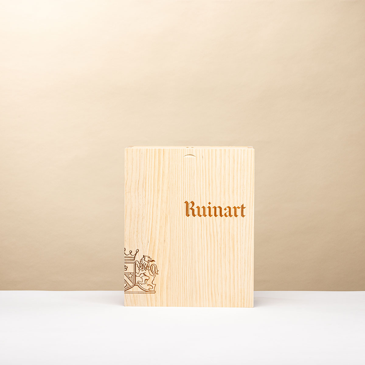 Duo Ruinart Blanc de Blancs & Rosé. Présenté dans un coffret en bois élégant orné des armoiries historiques de la Maison, ce duo prestigieux incarne toute la finesse et le raffinement du plus ancien Champagne de l’histoire.