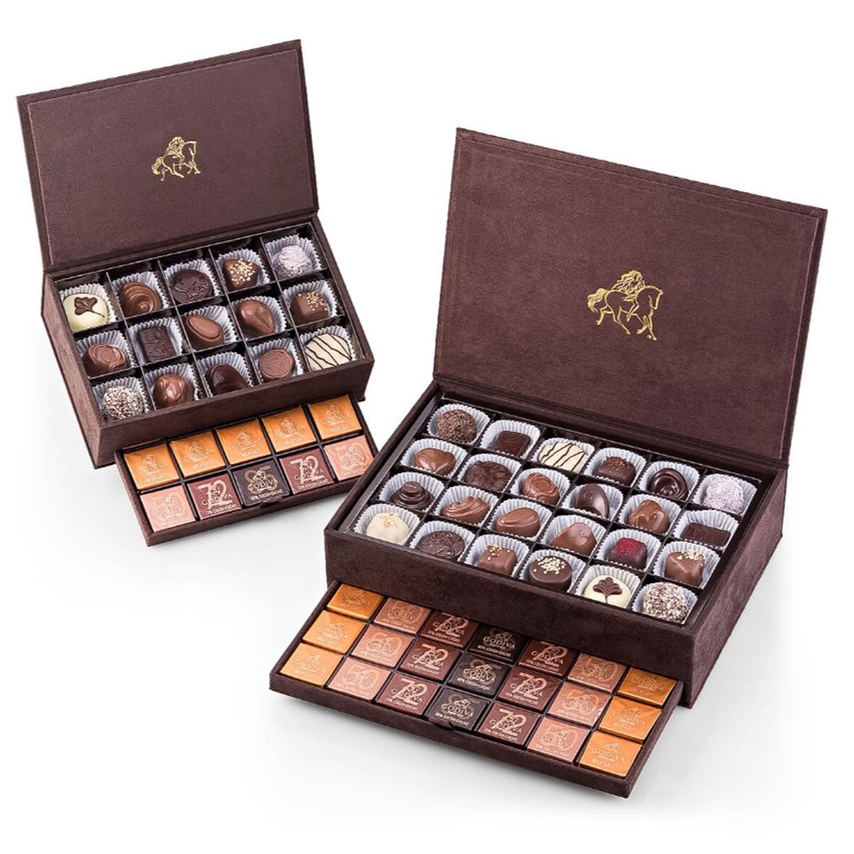 Medium boîte Royale: 15 chocolats et 30 Carrés personnalisés.
