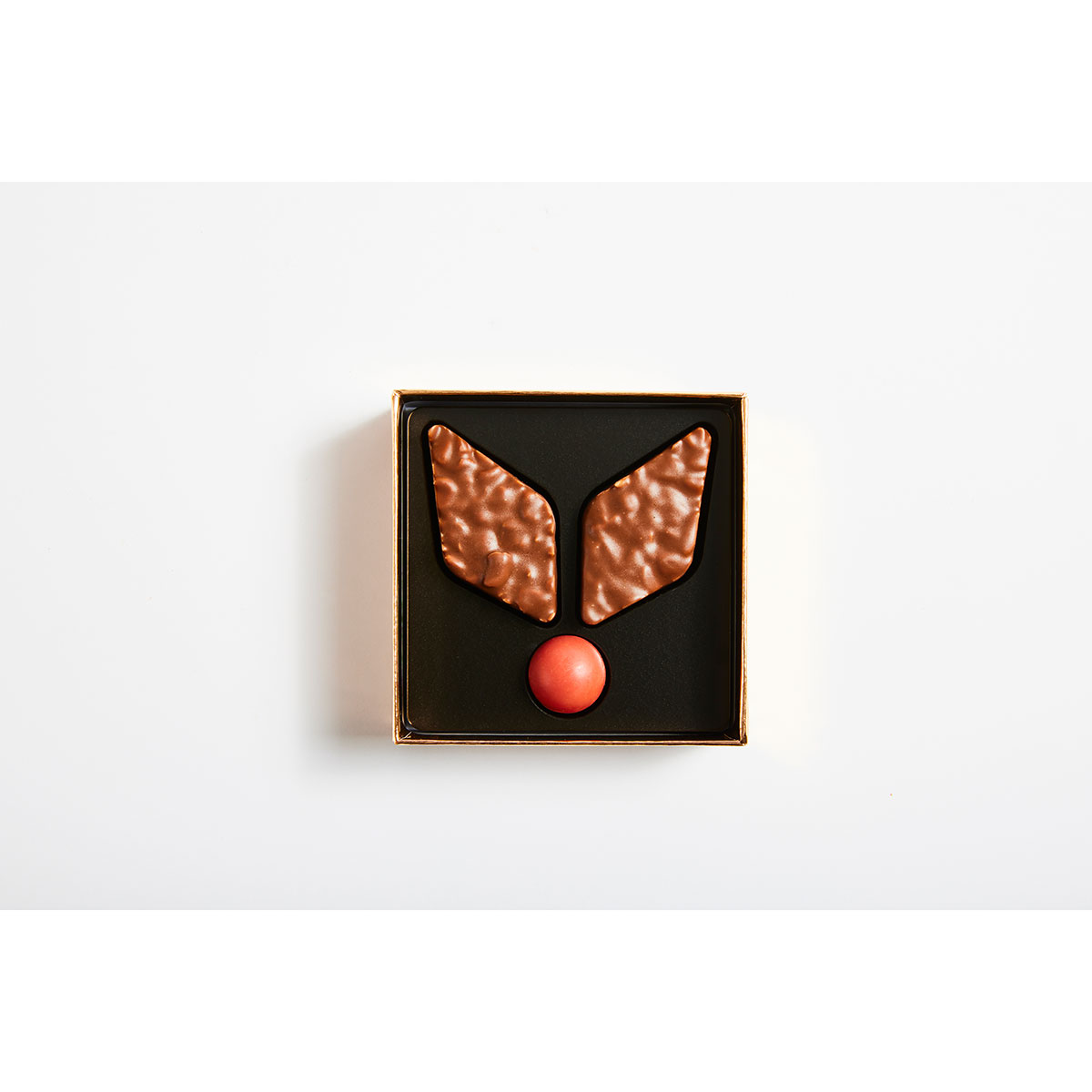 Ingrédients: sucre, fèves de cacao grillées, beurre de cacao, massepain (contient : amandes), noisettes, poudre de lait, amandes, crème fraîche, feuilletine (contient : gluten, lait), pistaches, morceaux de caramel (contient : lait), sirop de glucose, émulsifiant : lécithine de tournesol, sel, vanille naturelle, épices spéculoos (cannelle, vanille, anis étoilé, clou de girofle, cardamome), arôme naturel de citron, film de transfert : curcumine, concentré (radis, pomme, cassis), sucre, poudre de lait, émulsifiant : lécithine de tournesol, huile végétale, beurre de cacao.